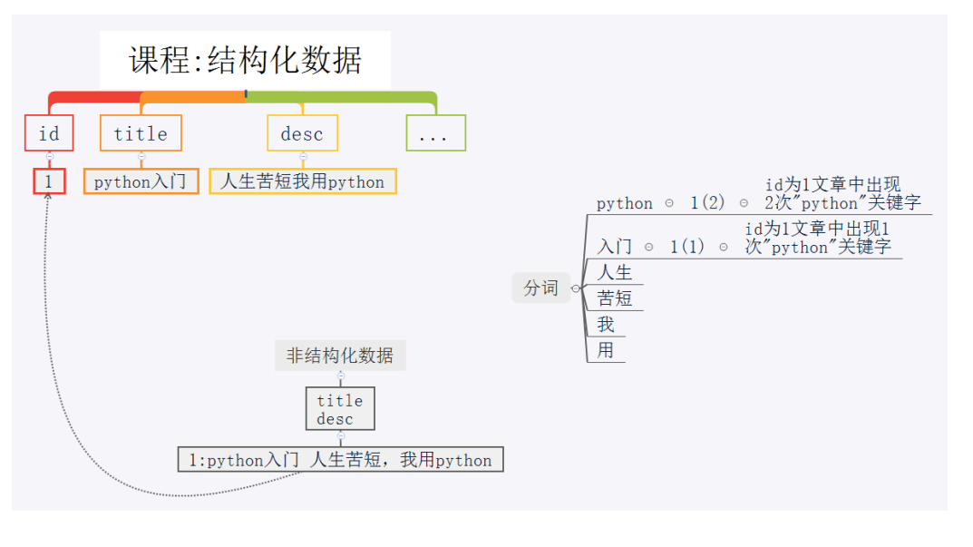 事先把文章使用分词打散,以词为依据,标记清楚对应的文章的编号