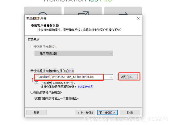 4:选择安装程序光盘的镜像文件iso(选择镜像文件路径),点击”下一步”