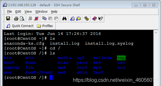 示例:在根目录 / 下使用ls,可以看到该目录下的所有的目录和文件