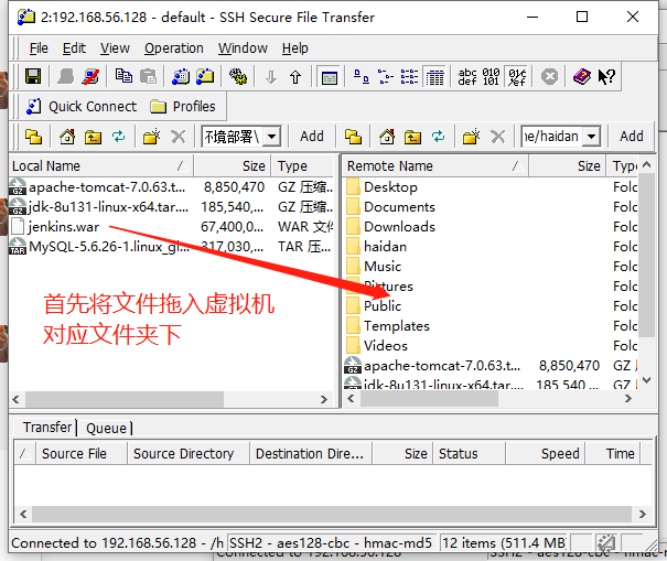 1. 首先我们先将jenkins.war文件从本地拖入虚拟机的对应文件夹下