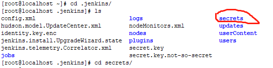 7.进入.jenkins文件后继续查看,找到secrets文件,找到之后进入