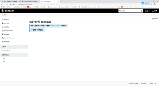 11.直到出现现在的画面之后,创建管理员用户并下一步往下点击进入Jenkins主界面