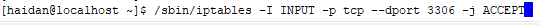 /sbin/iptables -I INPUT -p tcp --dport 3306 -j ACCEPT