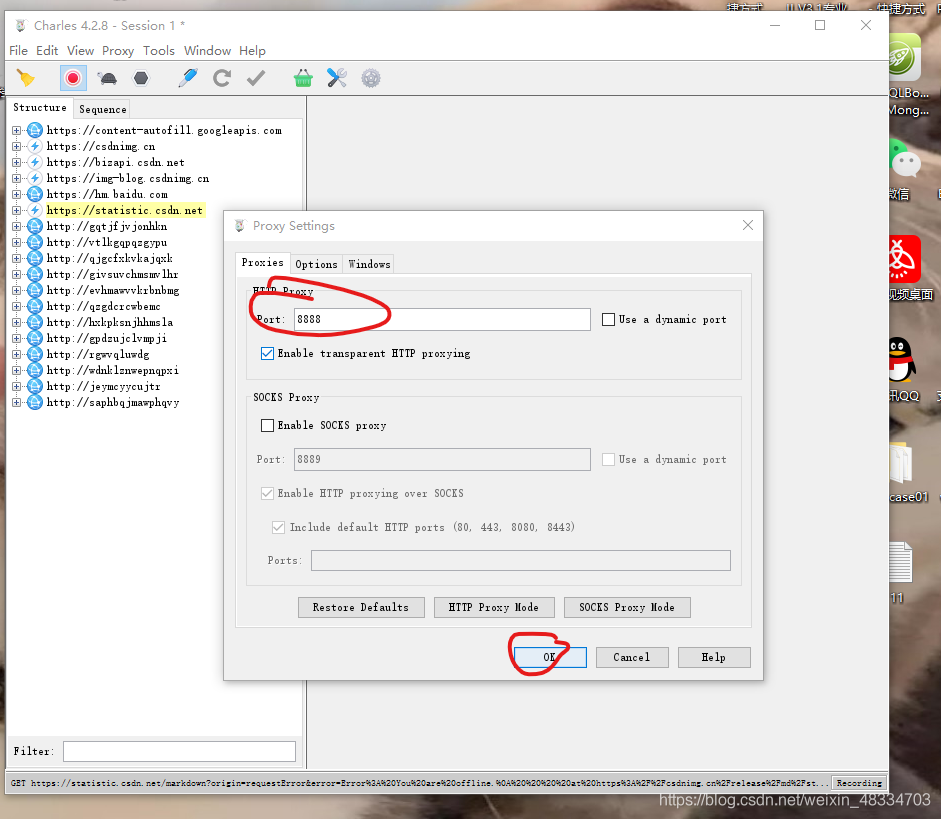 2:设置端口port以及勾选Enale transparent HTTP proxying