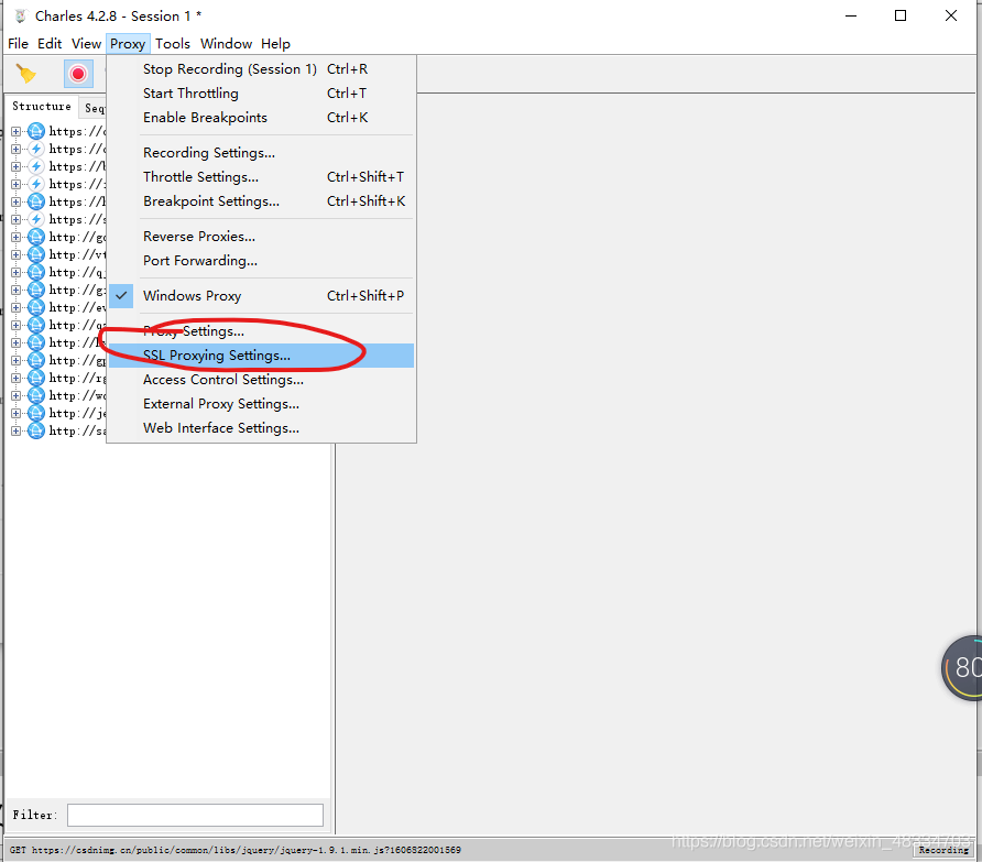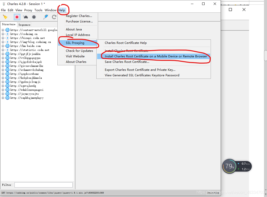 5:点击help选择ssl Proxying,点击第三个(下载移动端证书)