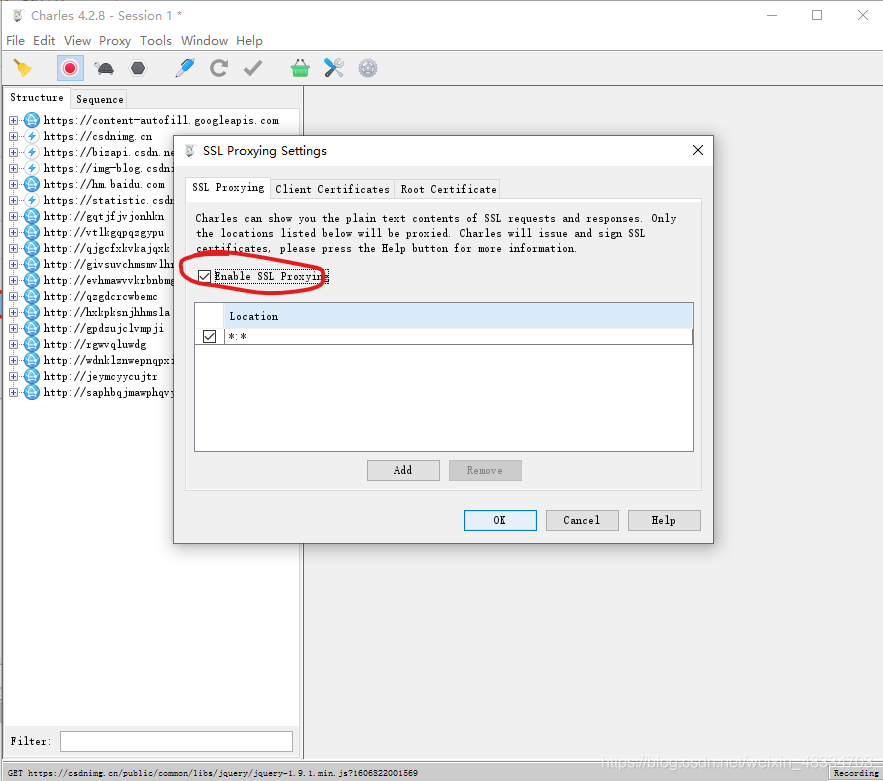 在上方的help,然后选中SSL Proxyying里面的Install Charles Root Certificate on a Mobile Device or Remote Browser