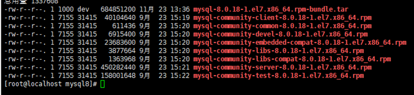 tar -xvf mysql-8.0.18-1.el7.x86_64.rpm-bundle.tar