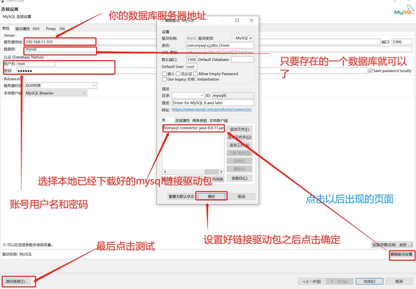需要注意的一点是连接驱动默认使用的是在线驱动,然后通过网络进行下载,这种方式非常考验网速,不建议使用;还有一种方式就是手动下载连接包,然后在配置的时候选择下载好的链接驱动包。