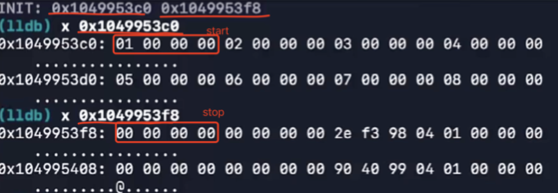 __sanitizer_cov_trace_pc_guard_init:获取整个工程中所有函数/方法的数量;start stop是存储的是工程中符号的个数