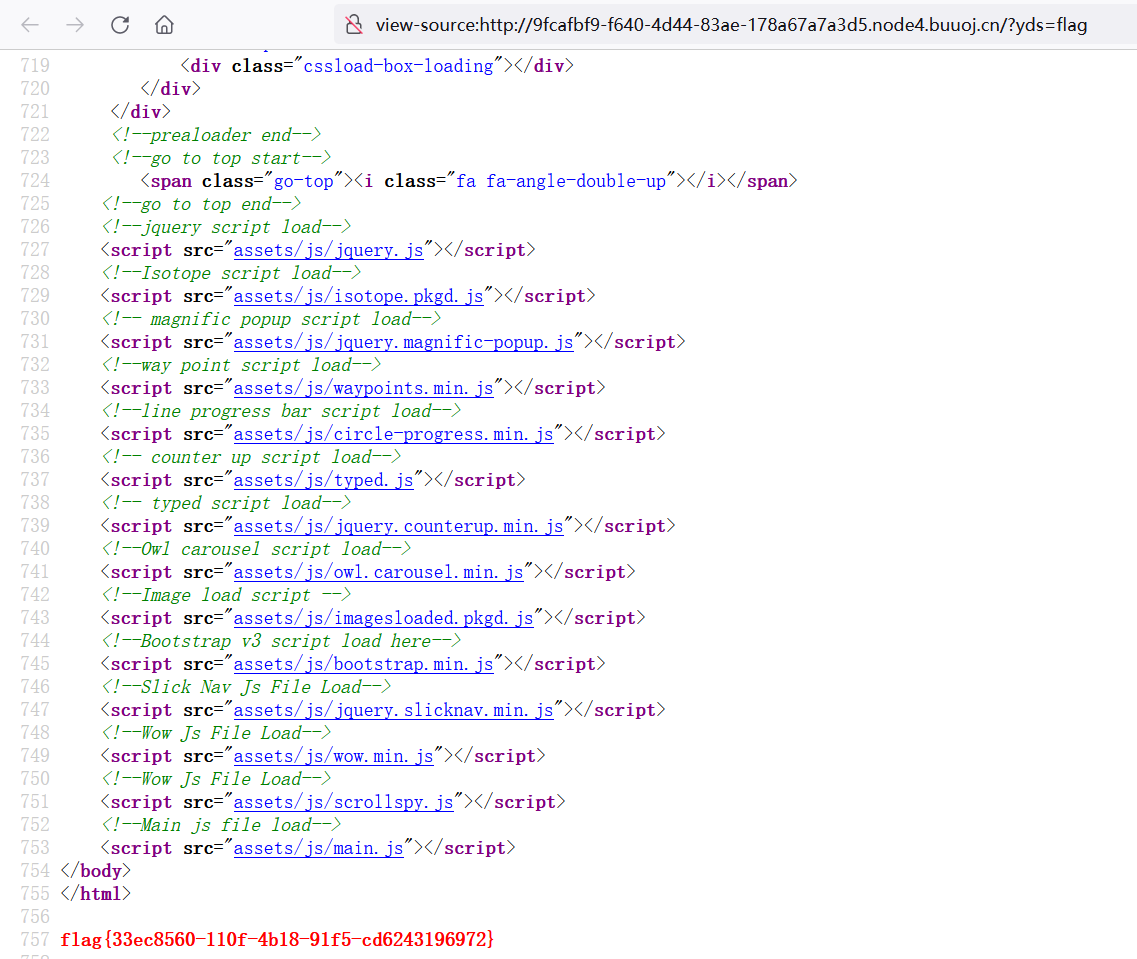 只要在令$yds=$flag,将原来$yds变量的值进行覆盖,同时符合退出条件“不给flag传值”,就可以得到flag