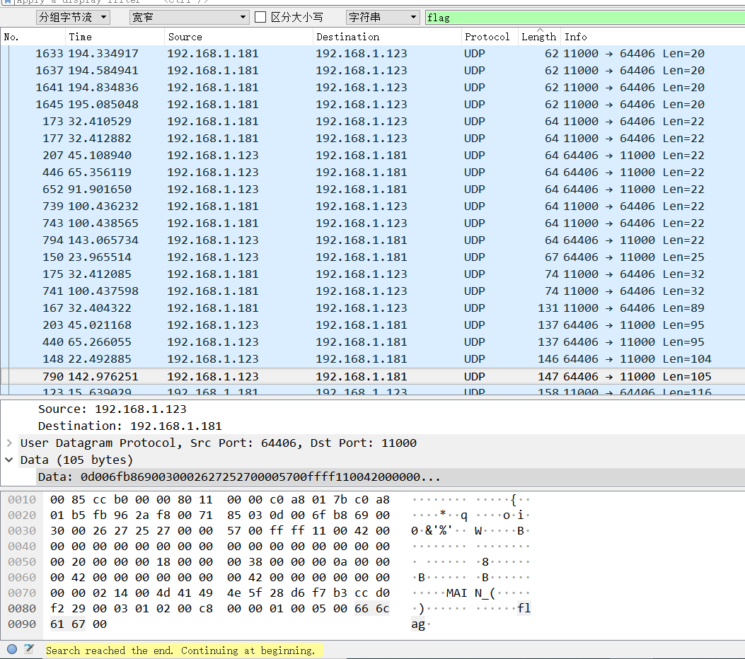 追踪UDP流后也没有发现flag