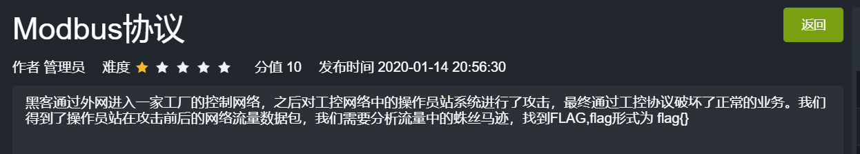 尝试将其作为flag{TheModbusProtocolIsFunny!},发现正确