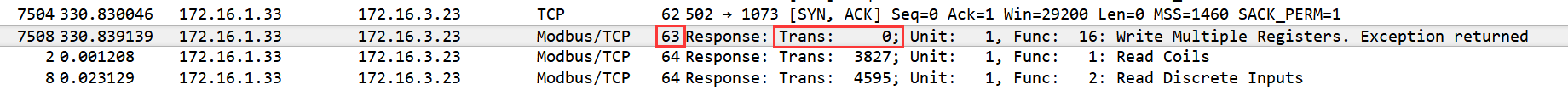 打开流量包,根据提示,分析Modbus/TCP的数据包