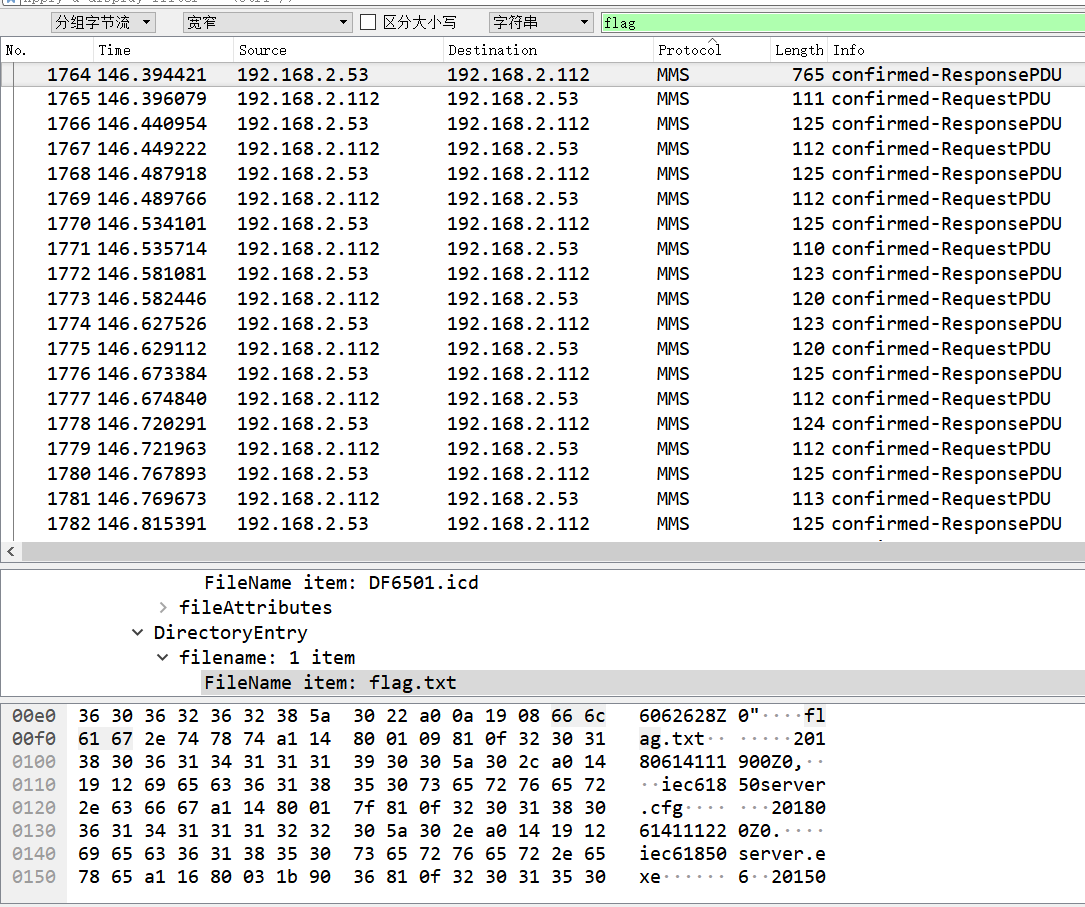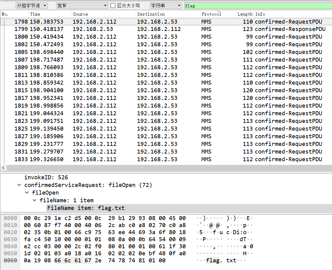 在MMS的数据包中查找flag字符