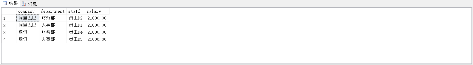 insert into t_rank values ('腾讯','财务部','员工D4','21000');