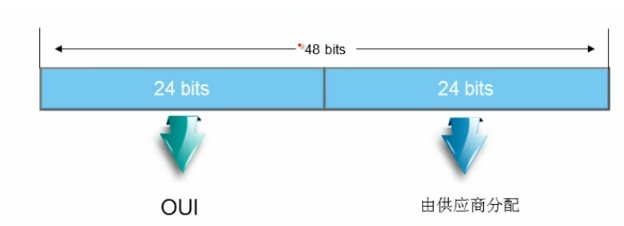 MAC地址总共为48bits,前24bit为各个厂商的唯一标识;后24bits为每个厂商为此网卡提