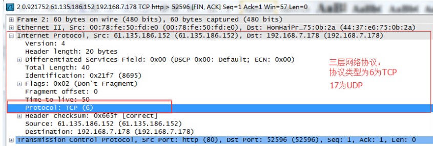 注:三层中的Total Length为16bit,所以最大可以表示65535字节,所以三层的最大数为655535字节,二层最大表示的数为1518,所以实际数据包的大小为1518