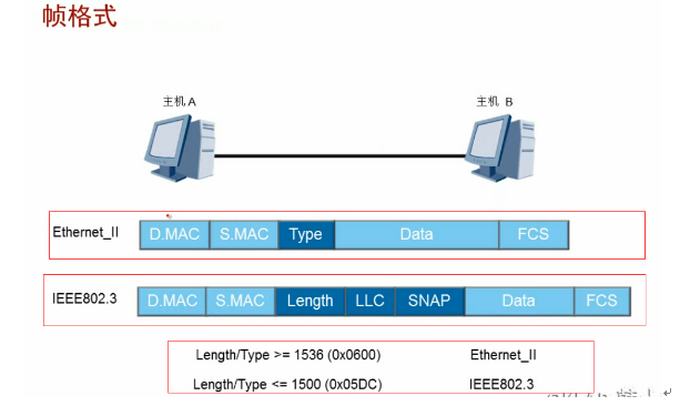 数据帧封装分为两种帧格式封装,一种为Ethernet_II定义格式;一种为IEEE802.3定义格式。