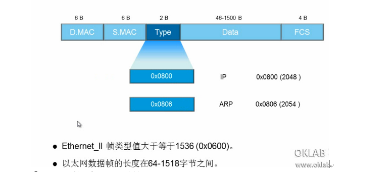 ① 当数据包的长度大于或等于1536Byte时为Ethernet_II协议封装。