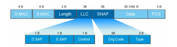 ② 当数据报的长度小于或等于1500Byte时为IEEE802.3协议封装。