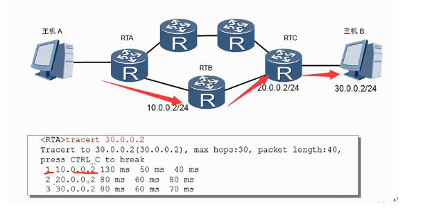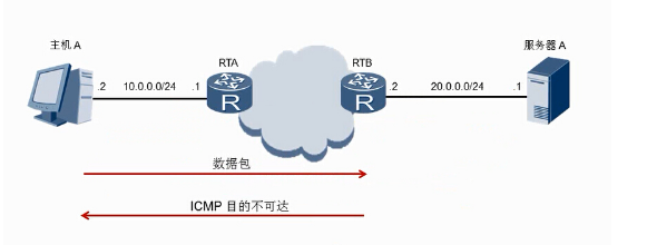 如图所示:主机A想要访问服务器A,他的默认网关为RTB,于是发送ICMP报文给RTB,但是服务器A位于RTA上(路由协议获取服务器A的位置),于是RTB发送ICMP重定向给主机A,告诉主机A访问服务器A将数据包送往RTA。