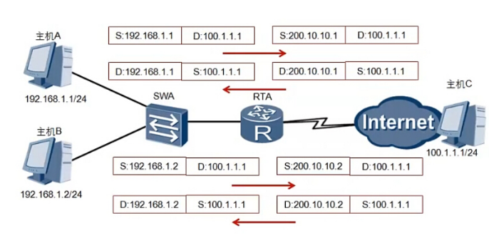 Proxy ARP,即代理ARP,在开启了Proxy ARP功能后(华为设备默认不开启),当路由器接口收到一个ARP请求后,路由器会查找自己的路由表,如果路由表中存在去往ARP请求的MAC地址(IP),路由器会将与其同网段(相当于网关)的接口MAC作为相应回复ARP请求。