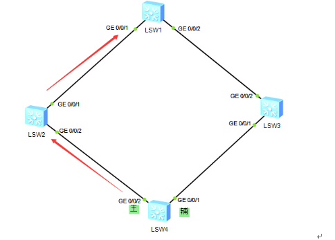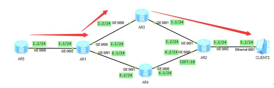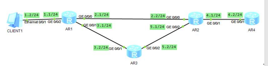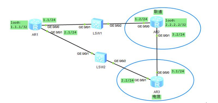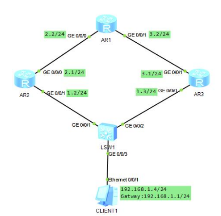 AR1为企业边界路由器,配置默认路由优先走联通,如果联通链路失效,走电信,但是由于中间有交换机,所以如果1.2网段链路down掉,但是企业边界的路由器的G0/0/0依旧开启,此时默认路由就不会消失,数据包传递到LSW1,由于接口down掉,会直接将数据包丢弃,此时使用NQA联动静态路由探测链路状况,实现有效的路由修改。