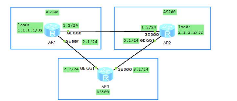 ① AR2----AR3使用路由协议实现ISP的互联:
