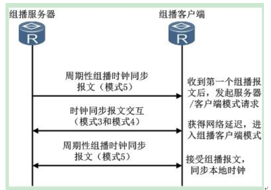 ①多播服务器:多播服务器持续侦听报文。若某个服务器可以被同步,则服务器将使用客户端的单播地址返回报文(Mode字段设置为4)。
