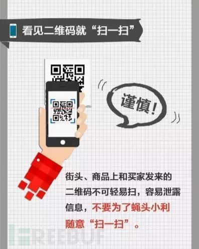 应对方法● 对于陌生的二维码,尽量避免扫描;● 对扫码送礼品等活动也应提高警惕。此外,智能手机可通过蓝牙传播病毒,别人通过蓝牙间谍软件也可查看你的电话本、信息、文件,修改你的音量,替你拨号等,所以平时没有特殊用途时,请关闭你的“蓝牙”。