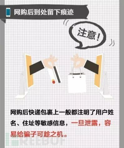 应对方法● 有选择地填写快递收货信息、不贪便宜;● 收到网购货品后,涂黑快递信息再处理包装;● 如快递公司不能送货上门,需自提或是只到小区门口,就尽量不要填写详细门牌号等信息。