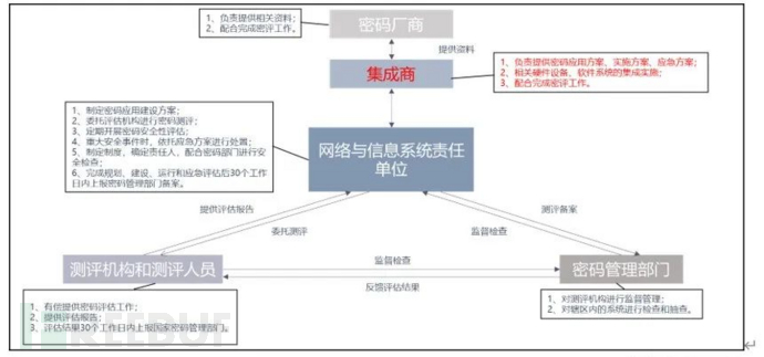 在商用密码整体应用中,分为密码厂商、集成商、网络与信息系统责任单位、测评机构和测评人员、密码管理部门五大角色,我们认为其中集成商的技术水平和能力直接决定商用密码应用的效果。