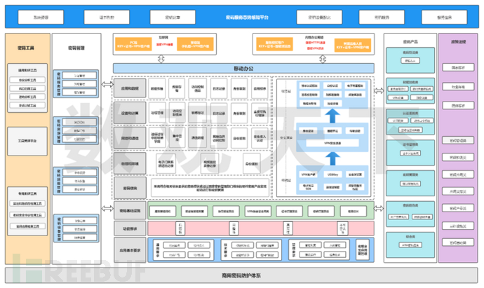 数观天下团队通过深入研究行业用户场景,结合GB/T 39786-2021《信息安全技术 信息系统密码应用基本要求》、《商用密码应用与安全性评估》及各大知名厂商解决方案进行综合分析,分别从密码政策、密码产品、密码管理、基本要求、密码防护架构、密码应用场景和密码态势感知平台这七个方面构建出一套密码安全防护体系,从顶层设计的高度解读了商用密码防护方式不是单一的,而是一个完整的生态链。板块内容详解如下: