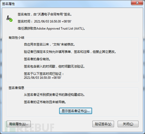 2,文档是由具有效的数字签名证书来签署的,文档签署者身份明确。