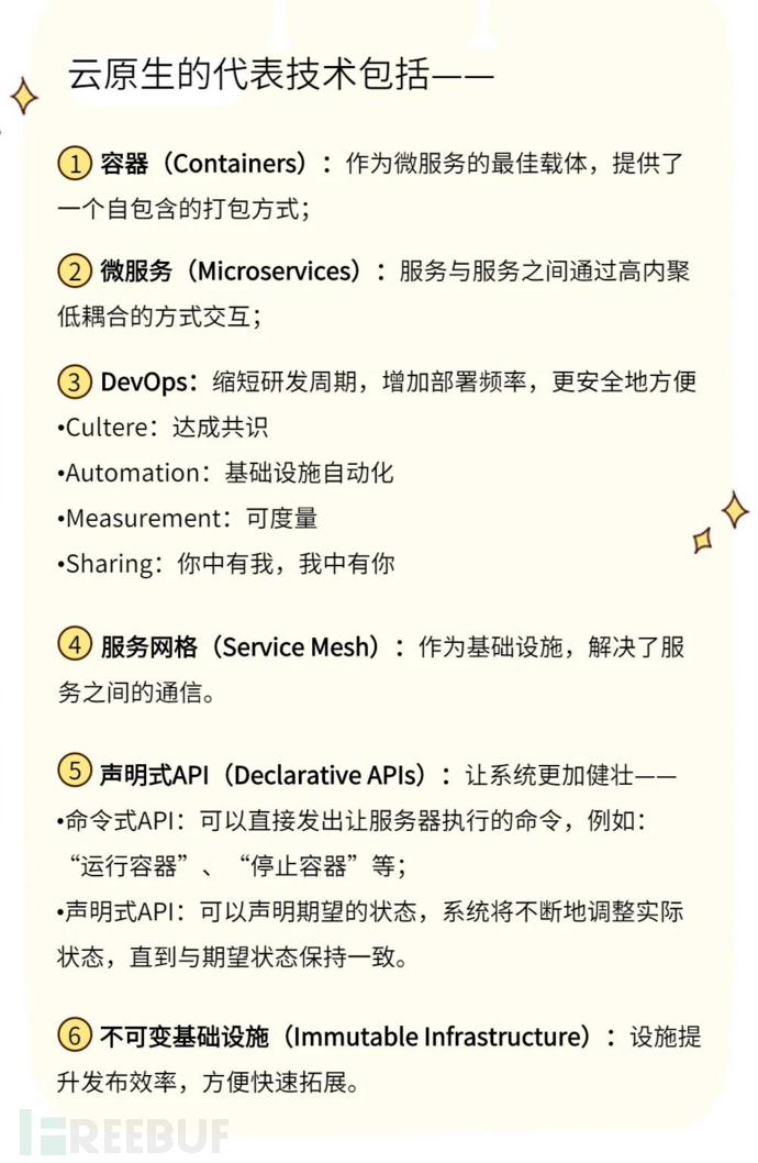 所以回到最开始的问题,因为云本身具有可见和不可预见的弊端,所以大佬们开发出了因云而生的技术应用,即云原生。充分地发挥云的优势,在云上以最佳的方式运行。