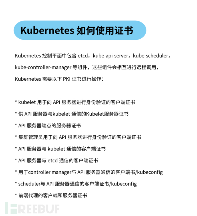 容器编排系统组件通信安全、服务网格数据传输加密、微服务架构下的认证管理等都需要涉及证书应用。以Kubernetes为例,Kubernetes(也被称为K8s)是Google于2014年6月开源出来的容器编排调度引擎,用于管理云平台中多个主机上的容器化的应用, 让部署容器化的应用简单并且高效。 Kubernetes中包含多个以独立进程形式运行的组件, 这些组件之间通过HTTP/gRPC 相互通信,在进行网络通信时,通信双方需要验证对方的身份,以避免恶意第三方伪造身份窃取信息或者对系统进行攻击。因此,Kubernetes 需要 PKI 证书才能通过 TLS 进行身份验证。