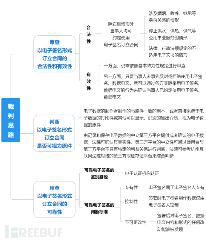 在此值得一提的是,虽然判断电子签名的可靠性是确认法律效力的关键步骤,但对于不可靠电子签名的法律效力也不能做简单否定。不可靠电子签名与可靠电子签名的区别仅在于安全程度的不同。在法律效力方面,不可靠电子签名不会产生法律拟制的推定效果。法院只能通过在案证据更严格审查来认定电子签名是否具备法定有效条件,综合判断能否发生签名效力并将相应的数据电文归属于签名人。