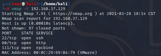 快速扫描看看打开的端口。
