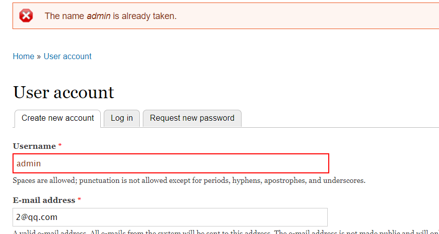 尝试创建个账号,显示admin已经存在,尝试弱口令和sql失败。到这里卡顿了。查了一些资料才知道Drupal是一个框架。见识短浅+1。