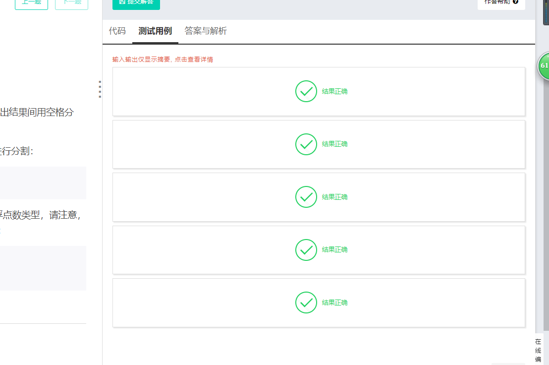 编写一个程序,计算输入数字N的0次方到5次方结果,并依次输出这6个结果,输出结果间用空格分隔。其中:N是一个浮点数。
