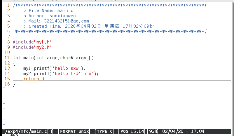 通过vim编辑器写一个最简单的C语言程序,如写一个输出自己学号的程序。