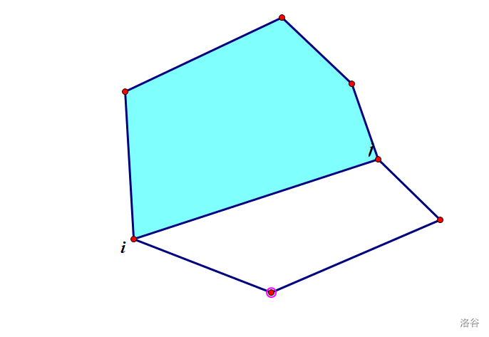 \(dp_{i,j}\)表示\(i\)点到\(j\)点所截下来的图形的方案数,如下图中阴影部分的划分方案数