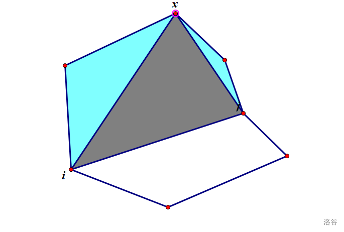 转移条件为\(x\)点在\(ji\)的右边,如上图,用叉乘判断