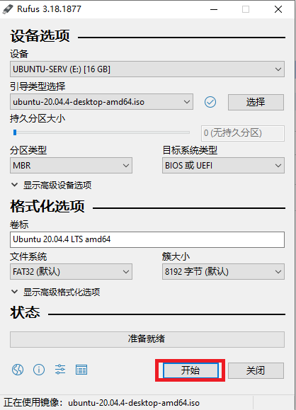 插上准备好的U盘,打开rufus,准备桌面版本ubuntu