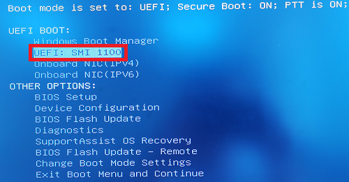 重启电脑,快速按F12进入BIOS界面,选择UEFI方式回车启动。