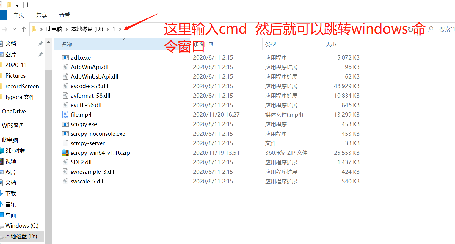 在解压文件界面 cmd 进入windows命令窗口