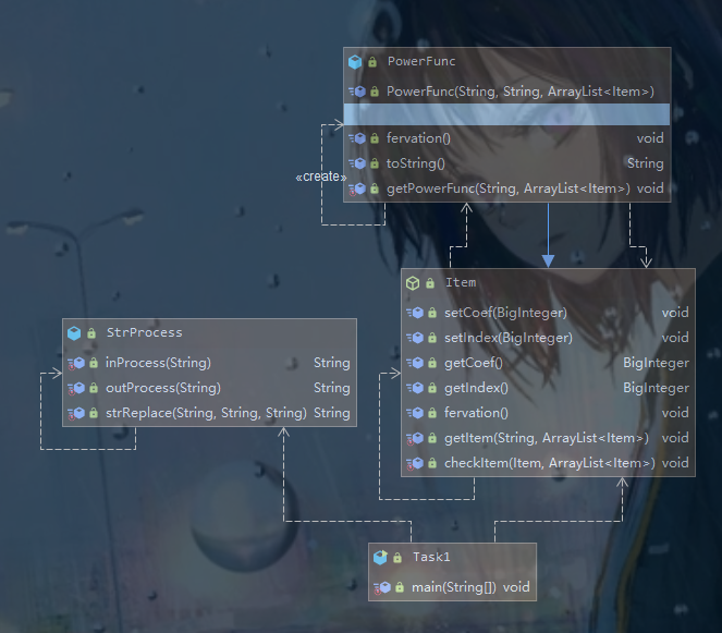 本次作业,为保证后续的迭代工作,建立了Item抽象类,并设立了求导抽象方法。但是由于对后续迭代的情况考虑不周,第二次作业还是选择了重构。