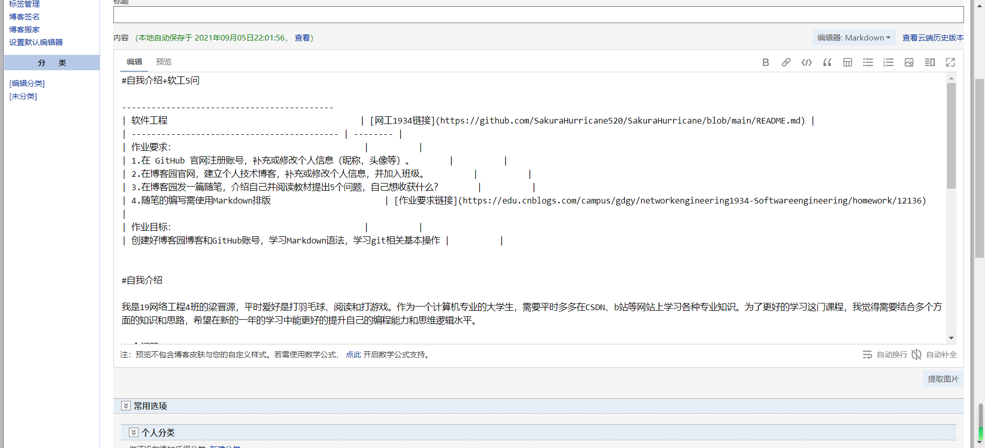 | 创建好博客园博客和GitHub账号,学习Markdown语法,学习git相关基本操作 |