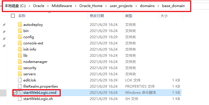 2. 安装完在目录下运行startWebLogic.cmd