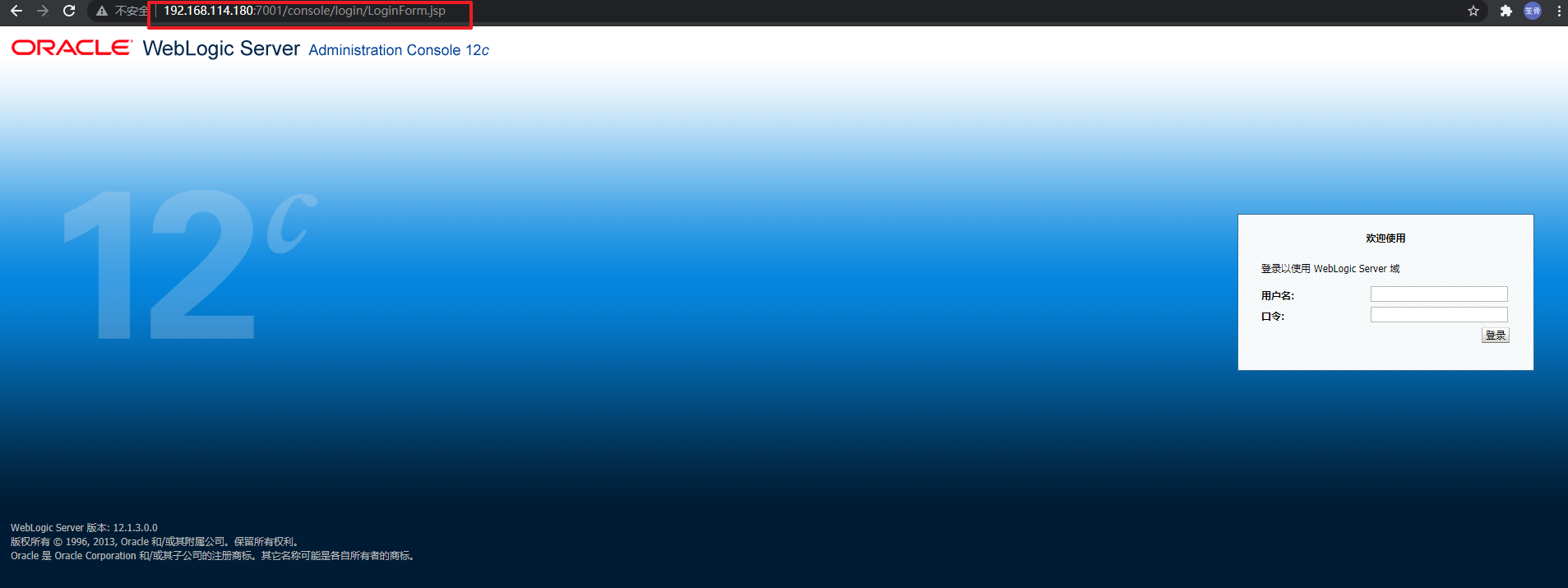 ①观察正常成功登陆的页面URL(默认账号密码weblogic/weblogic)